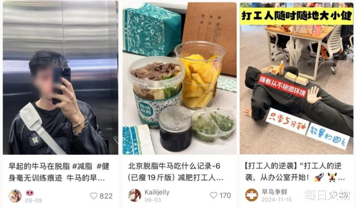 这些看似积极向上的内容背后,是脱脂牛马们进退两难的生存现实:不减肥,过劳肥、三高找上门;要减肥,工作已经耗尽全部力气。于是他们选择用自嘲化解尴尬,用幽默对抗现实,在社交平台上把自己活成了一个“积极向上”的段子。一位网友精辟总结:“我们这代打工人,晚上给健身房打工,连脂肪都不完全属于自己。”