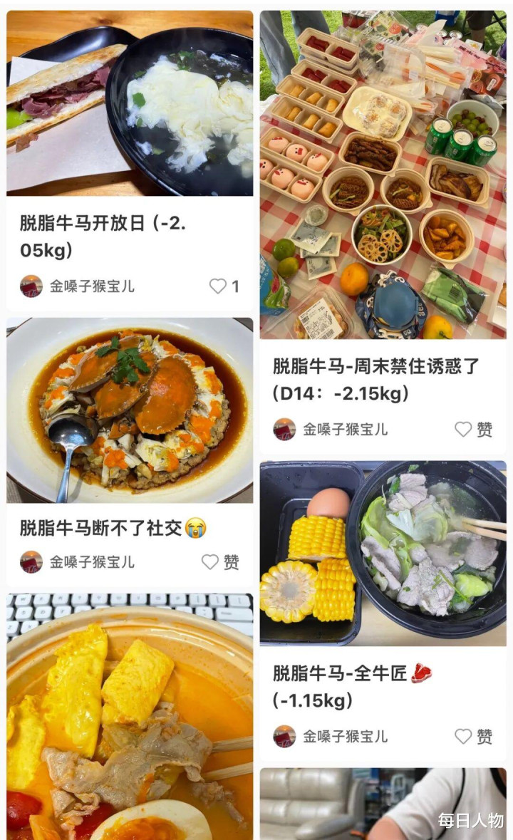 在出版业做了10年财务的林煜,今年下半年在社交平台上第一次接触到“脱脂牛马”的概念。“我觉得只是对本就很苦的牛马的一种更深层次调侃,”这位173cm的女士表示,“工作10年,体重增加了25公斤,虽然不排除结婚生子的影响,但胖了以后总把减肥挂在嘴边”。