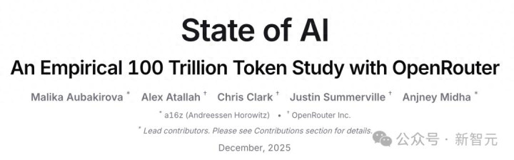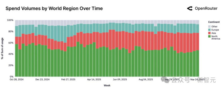 【新智元导读】100万亿Token实证数据揭秘2025年AI发展:开源逆袭、推理优化模型流量飙升至50%以上、用户留存取决于谁能率先完美解决特定痛点、亚洲付费使用量翻倍、中文成为全球第二大AI交互语言、AI不再是硅谷的独角戏!