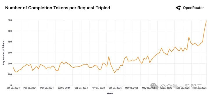 平均输出从150 Token增长到400 Token(主要是推理Token的增加)。