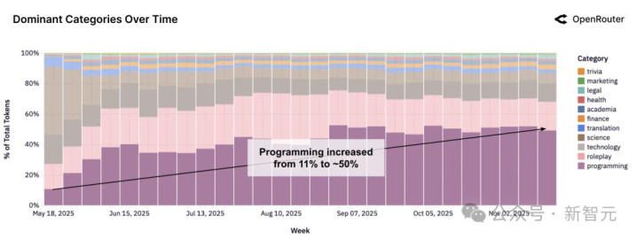 编程类请求的占比已从年初的11%飙升至50%以上。