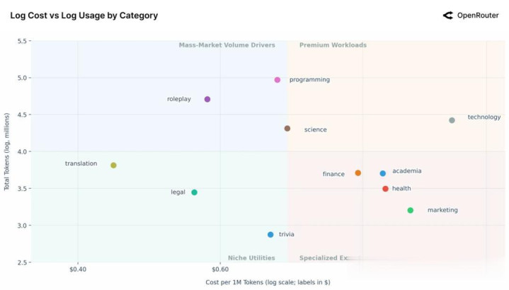 然而,OpenRouter提供了首个基于真实算力消耗的上帝视角。
